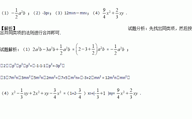 (3)7m2n-3mn2+5m2n+2mn2; (4).