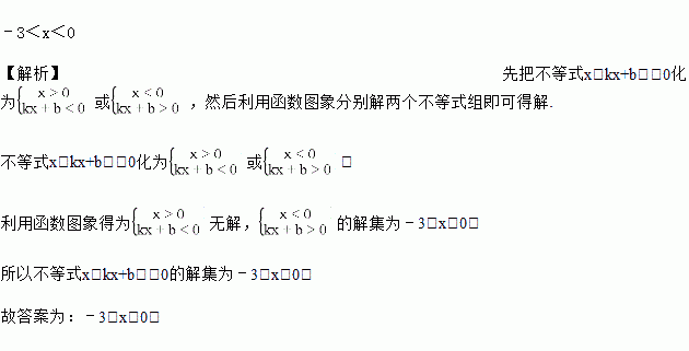 如图,直线y=kx+b交x轴于点A,交y轴于点B,则不等式x(kx+b)<0的解集为_____.