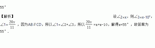 如图是超市里购物车的侧面示意图,扶手AB与车底CD平行,∠2比∠3大10°,∠1是∠2的倍,则∠2的度数是_____.