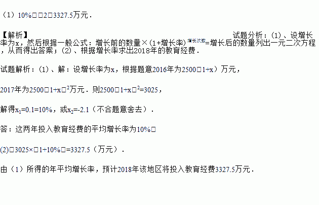 某地区2015年投入教育经费2500万元,2017年投入教育经费3025万元