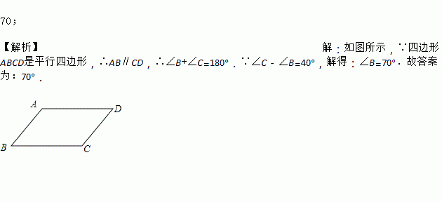 已知平行四边形相邻两个内角相差40°,则该平行四边形中较小内角的度数是 .