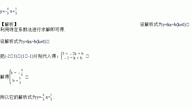 一次函数的图象经过点(-2,3)与(1,-1),求它的解析式.