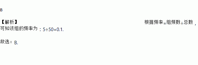 一个样本的容量为50,分组后落在某一区间内的频数是5,则该组的频率为( )