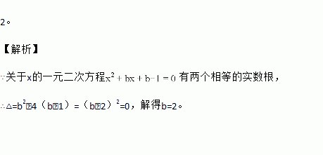 已知关于x的一元二次方程有两个相等的实数根,则b的值是