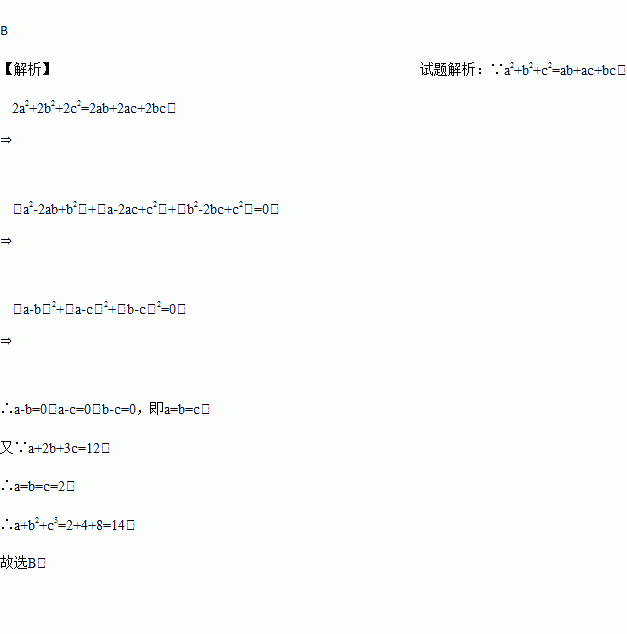 如果a+2b+3c=12,且a2+b2+c2=ab+bc+ca,则a+b2+c3=( )