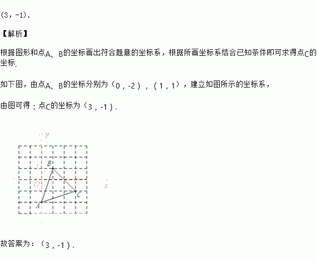 在边长为1的正方形网格中,如图所示,△ABC中,AB=AC,若点A的坐标为(0,﹣2),点B的坐标为(1,1),则点C的坐标为_____.