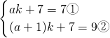 解答:将点P1(a,7),P2(a+1,9)分别代入y=kx+7得,