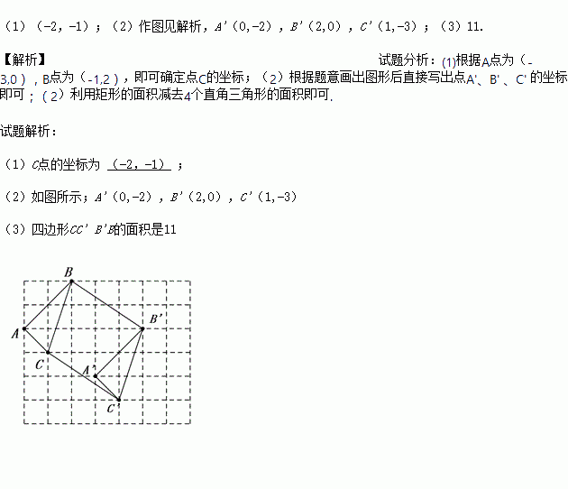 (3)连接C'C、B'B,直接写出四边形CC' B'B的面积。