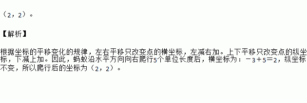 如图,点P(-3,2)处的一只蚂蚁沿水平方向向右爬行了5个单位长度后的坐标为