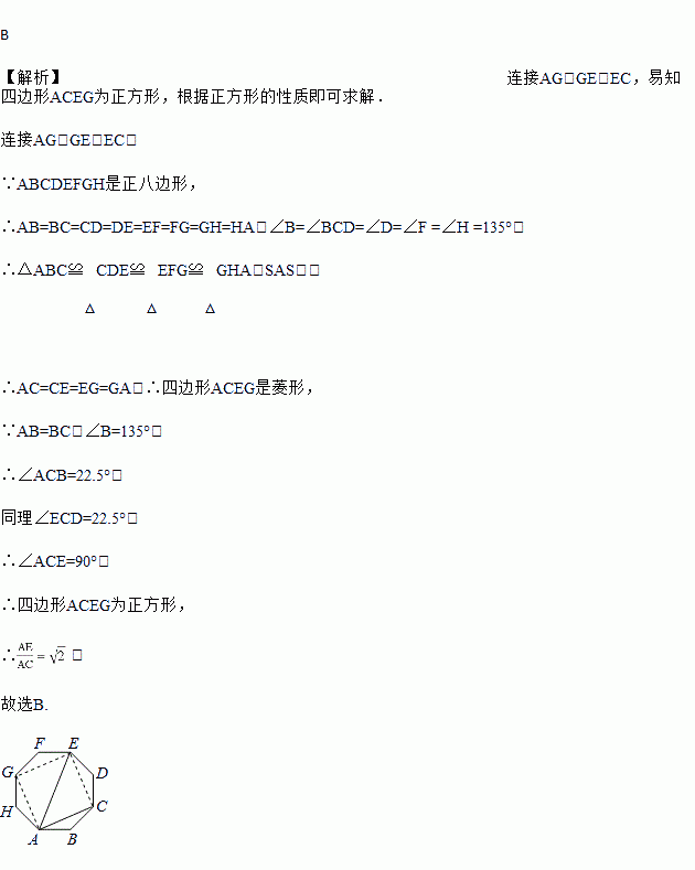 如图,在正八边形ABCDEFGH中,连接AC,AE,则的值是( )
