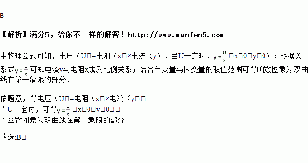 如果变阻器两端电压不变,那么通过变阻器的电流与电阻的函数关系图象大致是( )