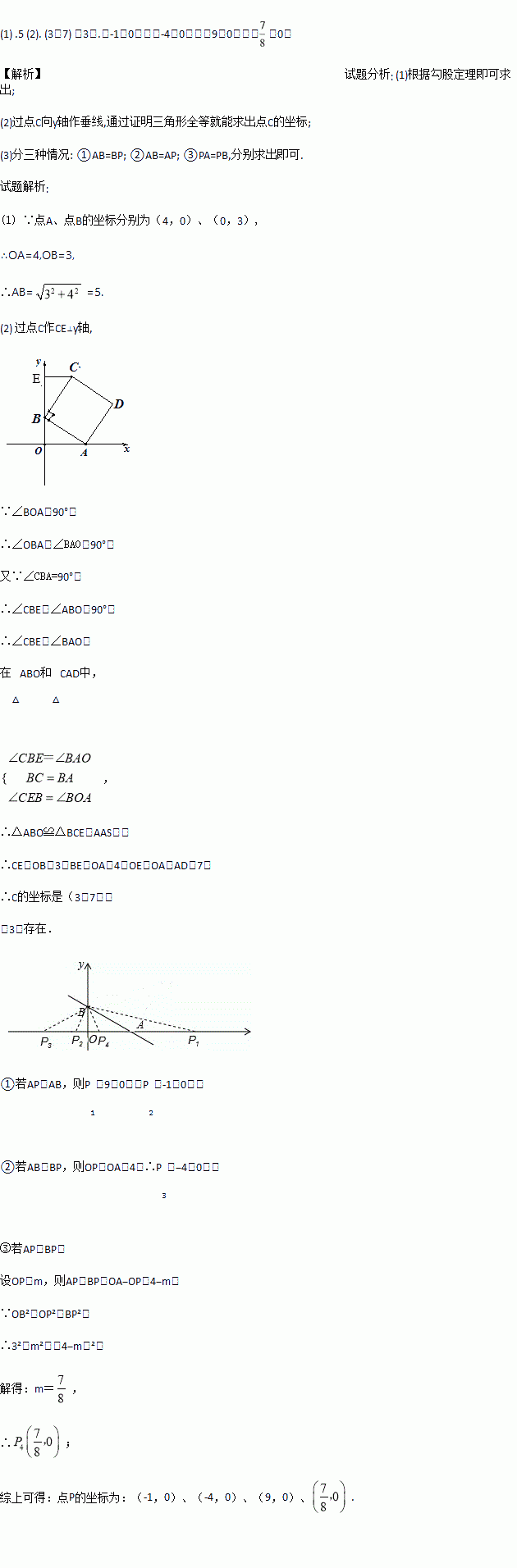 如图1,在平面直角坐标系中,点A、点B的坐标分别为(4,0)、(0,3).