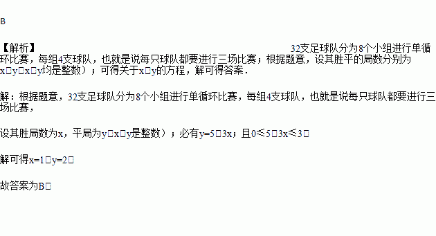在备战奥运会的足球赛中,有32支足球队将分成8个小组进行单循环比赛,小组比赛规则如下:胜一场得3分,平一场得1分,负一场得0分.若小组赛中某队的积分为5分,则该队必是( )