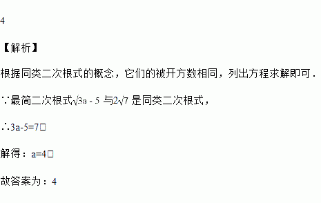 若最简二次根式与2是同类二次根式,则=____________.