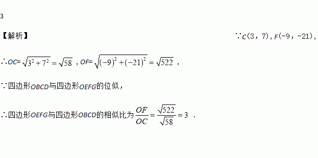 在平面直角坐标系中,四边形与四边形位似,位似中心是原点,已知与是对应顶点,且, 的坐标为, ,那么四边形与四边形的相似比是__________.