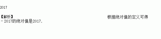 -2017的绝对值是________.