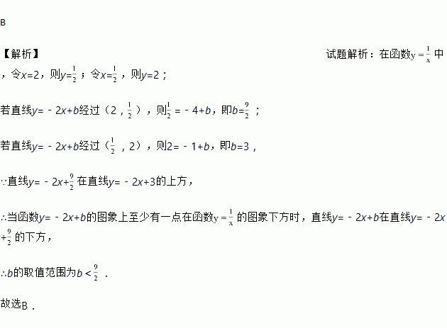 当≤x≤2时,函数y=-2x+b的图象上到少有一个点在函数的图象下方,则b的取值范围为( )