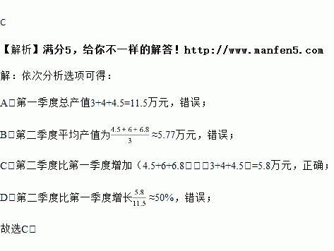 A. 第一季度总产值4.5万元 B. 第二季度平均产值6万元