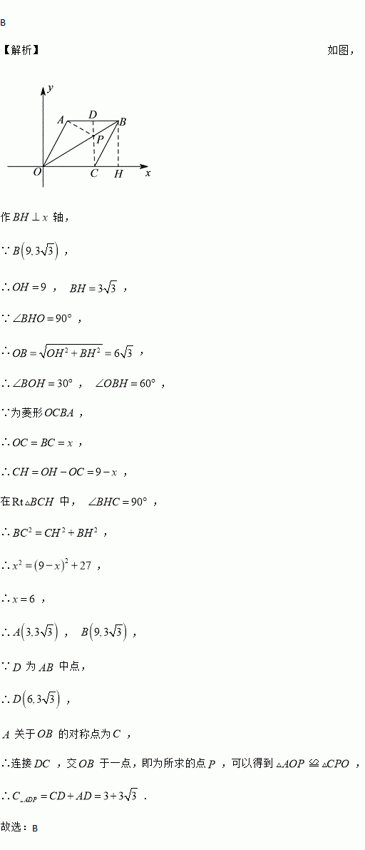 ),点D是AB的中点,点P在OB上,则△ADP的周长最小值为( )