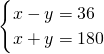 分析:一个多边形的每个内角都相等,每个内角与相邻外角的差为36°,又由于内角与外角的和是180度.设内角是x°,外角是y°,列方程组求解即可.