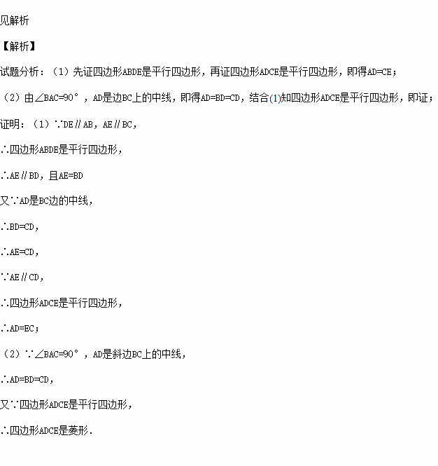 (2)当∠BAC=90°时,求证:四边形ADCE是菱形.