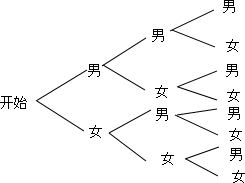 点评:此题需要三步完成,所以采用树状图法最简单.此题考查了学生对树状图的应用,解题的关键是认真审题.用到的知识点为:概率=所求情况数与总情况数之比.