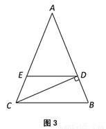 如图3,等腰△ABC为勾股高三角形,其中,CD为AB边上的高,过点D向BC边引平行线与AC边交于点E.若,试求线段DE的长度.