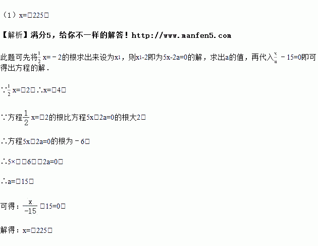 已知关于x的方程x=﹣2的根比关于x的方程5x﹣2a=0的根大2,求关于x的方程﹣15=0的解.