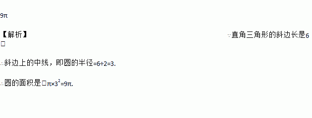 直角三角形的斜边长是6,以斜边的中点为圆心,斜边上的中线为半径的圆的面积是_______.