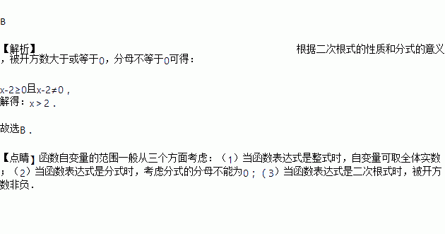 A. x≥2 B. x>2 C. x≠2 D. x≤2