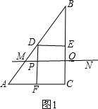 £¨2£©ÉèÔÚµãP´ÓµãFÔ˶¯µ½µãDµÄ¹ý³ÌÖУ¬µãPÂäÔÚMQÉÏ£¬Èçͼ1£¬![]()