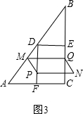 £¨2£©ÔÚµãP´ÓµãFÔ˶¯µ½µãDµÄ¹ý³ÌÖУ¬Ä³Ò»Ê±¿Ì£¬µãPÂäÔÚMQÉÏ£¬Çó´ËʱBQµÄ³¤¶È£»