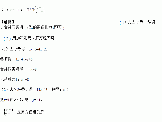 (1)解方程:; (2)解方程组: