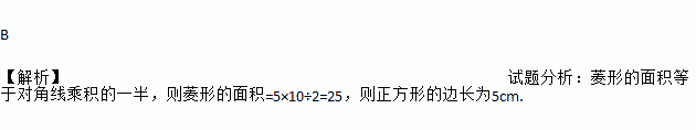 若一个菱形的两条对角线长分别是5cm和10cm,则与该菱形面积相等的正方形的边长是( )