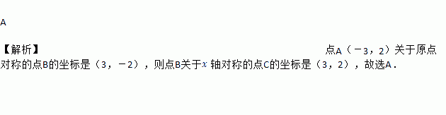 若点A(-3,2)关于原点对称的点是点B,点B关于x轴对称的点是点C,则点C的坐标是( )