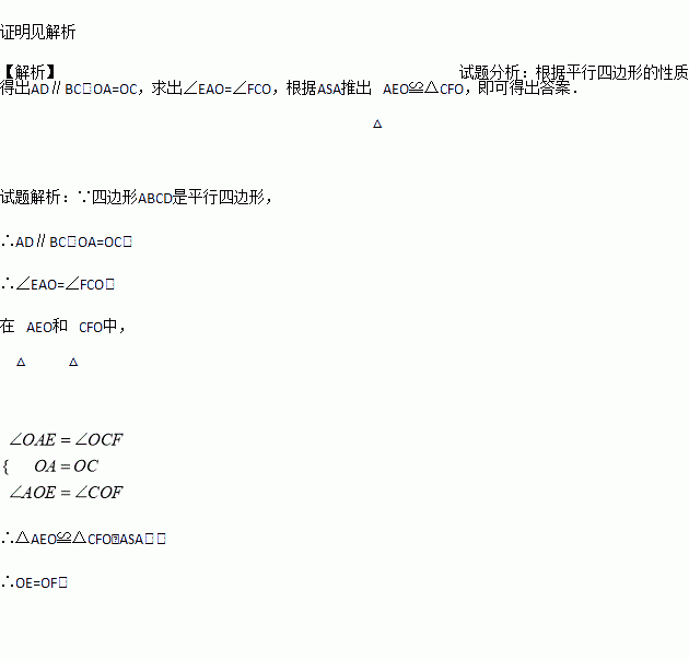 如图所示,在?ABCD中,对角线AC与BD相交于点O,过点O任作一条直线分别交AB,CD于点E,F.求证:OE=OF.