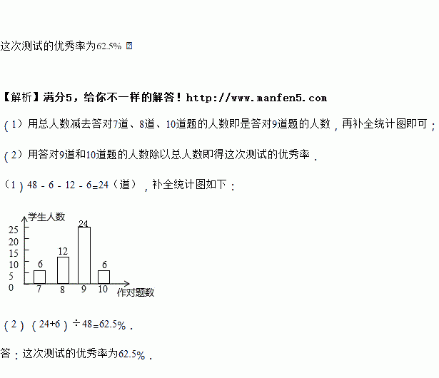 若规定学生至少答对道题为优秀,求这次测试的优秀率.