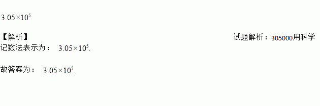 【解析】试题解析:305000用科学记数法表示为: 故答案为: