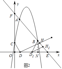 £¨3£©Èçͼ2£¬Å×ÎïÏßÓëyÖá½»ÓÚµãC£¬Ö±ÏßAB½»xÖáÓÚµãE£¬µãD£¨$\frac{4\sqrt{3}}{3}$£¬0£©£¬Á¬½ÓCD£¬½«CDËùÔÚµÄÖ±ÏßÈÆ×ŵãD˳ʱÕëÐýת90¡ã£¬ËùµÃÖ±Ïß½»Ö±ÏßABÓÚµãH£¬½«Ö±ÏßDHÑØ×ÅxÖáÕý·½ÏòÆ½ÒÆµÃµ½Ö±ÏßD1H1£¬ÆäÖеãH1ΪֱÏßD1H1ÓëÖ±ÏßABµÄ½»µã£¬D1ΪֱÏßD1H1ÓëxÖáµÄ½»µã£¬µ±µãD1Æ½ÒÆµ½µãEÊ±Æ½ÒÆ½áÊø£¬Á¬½ÓBD1£®µ±¡÷BD1H1ÊǵÈÑüÈý½ÇÐÎʱ£¬ÊÔÇó³öµãD1µÄ×ø±ê£®