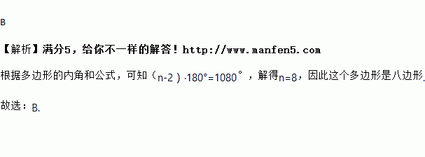 已知一个多边形的内角和为1080°,则这个多边形为( )