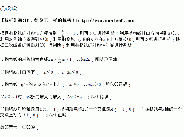 ,y2)是图象上两点,则y1<y2;④图象与x轴的另一个交点的坐标为(1,0).其中正确的是_____(把正确说法的序号都填上)
