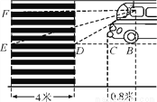 如图,某小学门口有一直线马路,交警在门口设有一条宽度为4米的斑马线,为安全起见,规定车头距斑马线后端的水平距离不得低于2米,现有一旅游车在路口遇红灯刹车停下,汽车里司机与斑马线前后两端的视角分别为∠FAE=15°和∠FAD=30°,司机距车头的水平距离为0.8米,试问该旅游车停车是否符合上述安全标准?(E,D,C,B四点在平行于斑马线的同一直线上)(参考数据:tan15°=2-,≈1.732,≈1.414)