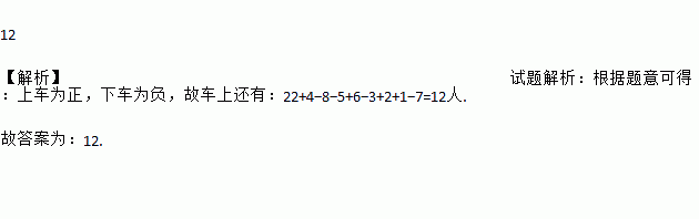 12 【解析】试题解析:根据题意可得:上车为正,下车为负,故车上还有:22+4?8?5+6?3+2+1?7=12人. 故答案为:12.