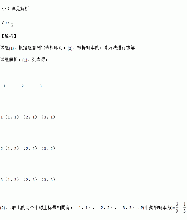 (2)规定当两次摸出的小球标号相同时中奖,求中奖的概率.