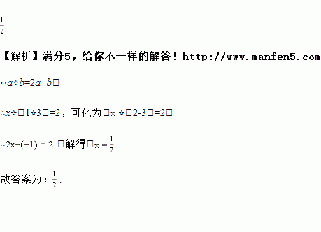 “☆”表示一种运算,定义:a☆b=2a?b,如果x☆(1☆3)=2,那么x=_________.