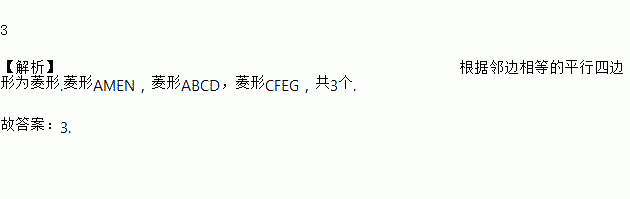 如图,四边形ABCD是平行四边形,点M,N分别在AB,AD上,且AM=AN,BM=DN,MG∥AD,NF∥AB,点F,G分别在BC,CD上,MG与NF相交于点E,则图中的菱形共有________个.