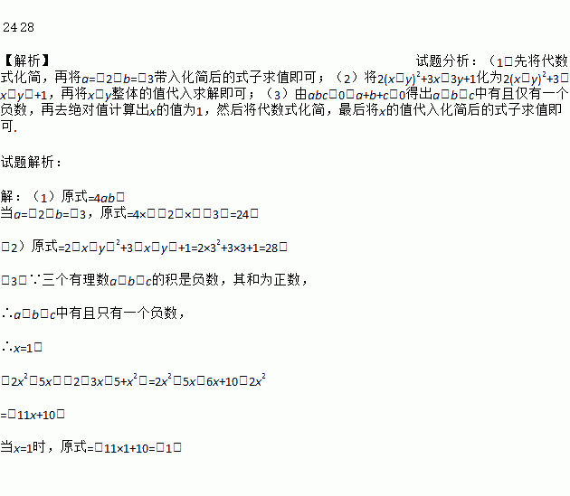 (3)化简并求值:已知三个有理数