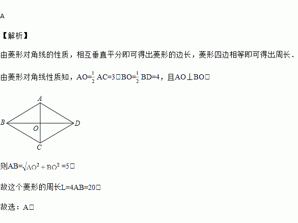 如图,菱形ABCD的对角线AC、BD的长分别为6和8,则这个菱形的周长是( )