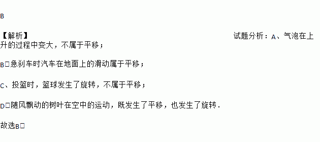 C. 投篮时的篮球运动 D. 随风飘动的树叶在空中的运动