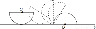 如图,在半径为3的半圆的初始状态是直径平行于桌面上的直线b,然后把半圆沿直线b进行无滑动滚动,使半圆的直径与直线b重合为止,则圆心运动路径的长度等于_____.